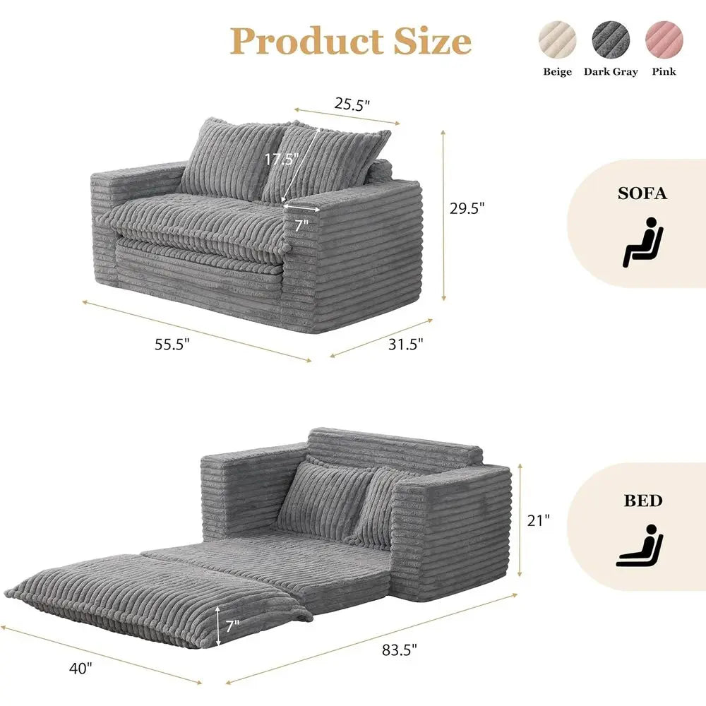 The sofa bed combines the soft texture with the stylish elements of a modern design made into a fabric that features a unique texture. With a sofa size of 55D x 31.5W x 21H and a spacious sleeper size of 83.5L x 40W x 7H, which can provide comfortable seating or bed for two people, the unique design brings you double element of both vision and use.